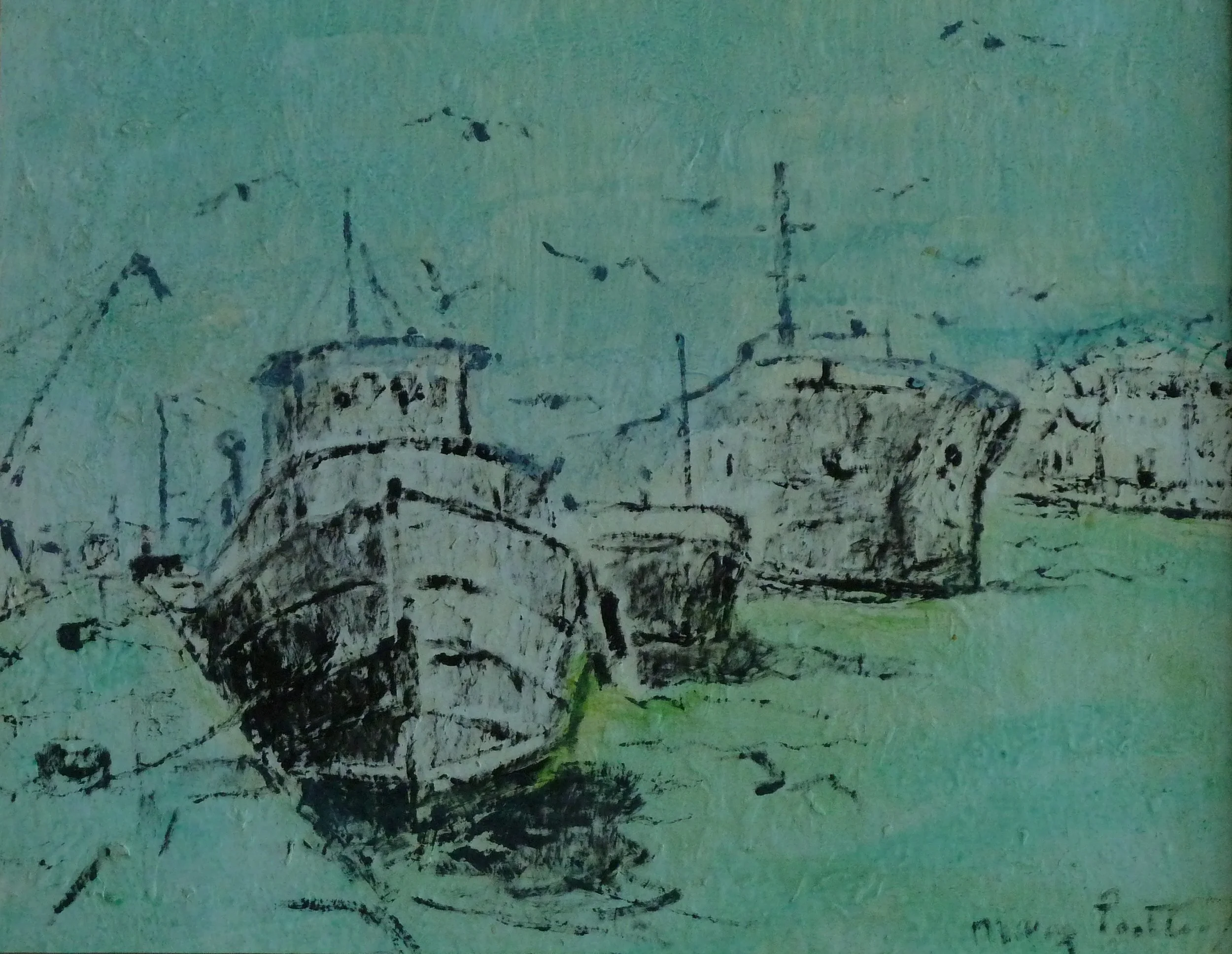 Ships At Port Colborne 2Mixed MediaPicture: 13 1/2” x 17 1/2”Frame: 19” x 23”Signed, date unclearPrice 2300 CADID: 158